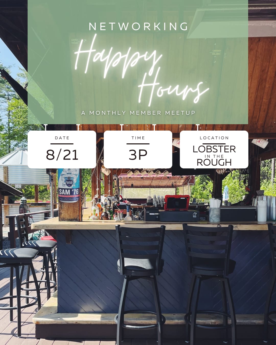 Come join your fellow Seacoast Board Members at our casual Monthly "Happy Hours" Meet Ups at various establishments in the Seacoast to catch up with old friends, make new ones, exchange ideas, have fun and network Lobster in the Rough, York