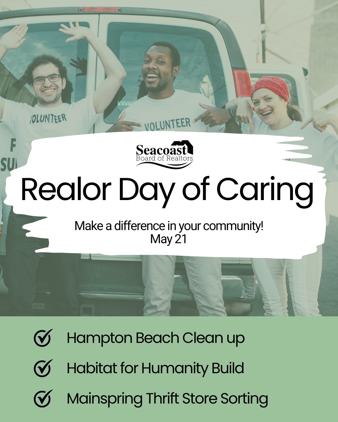Connect with your community and give back at this years REALTOR® Day of Caring. All are encouraged to participate in a day of giving back! Details to follow. Rain Date of 5/28